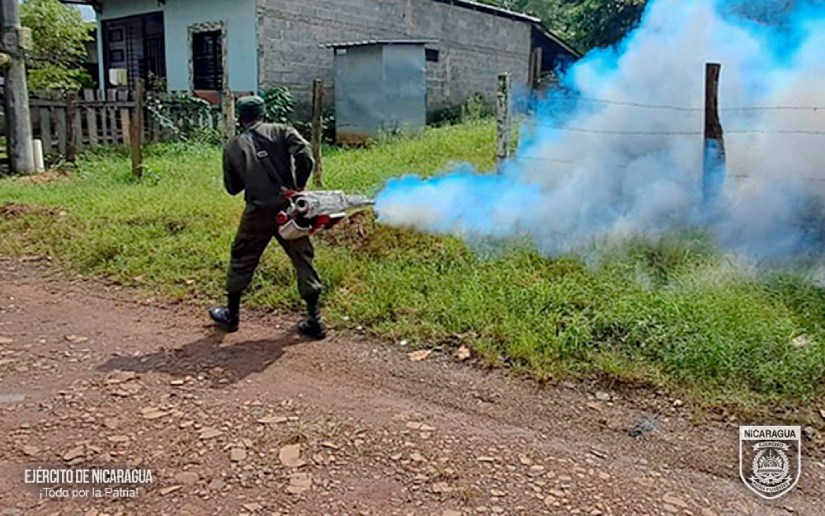 El Ejército de Nicaragua consecuente con el lema de que “Somos el Pueblo mismo uniformado trabajando en su propio beneficio”, del 17 al 21 de noviembre de 2025, a través del 5 Comando Militar Regional, en coordinación con el Ministerio de Salud (MINSA), participó en jornada de fumigación en diferentes barrios del municipio de Juigalpa, departamento de Chontales y del municipio de Nueva Guinea, Región Autónoma de la Costa Caribe Sur, con el objetivo de eliminar criaderos de mosquitos trasmisores del dengue y otras enfermedades.