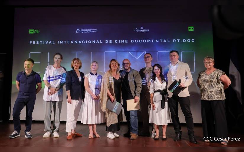 “Queremos nuevamente agradecer a nuestros hermanos del grupo RT por todo su trabajo en esta semana, celebrando este importante festival de documentales con sus proyecciones, sus conferencias, sus charlas, sus seminarios y los intercambios con los comunicadores sandinistas de Nicaragua. Gracias, Ekaterina, Daria, Boris, Yulia, Antón, Alexei, Oleg, Kirill, Artiom. Les reiteramos siempre que aquí está el pueblo de Sandino, el pueblo de Darío, esperándoles por todo el cariño, con todo nuestro amor”, expuso.