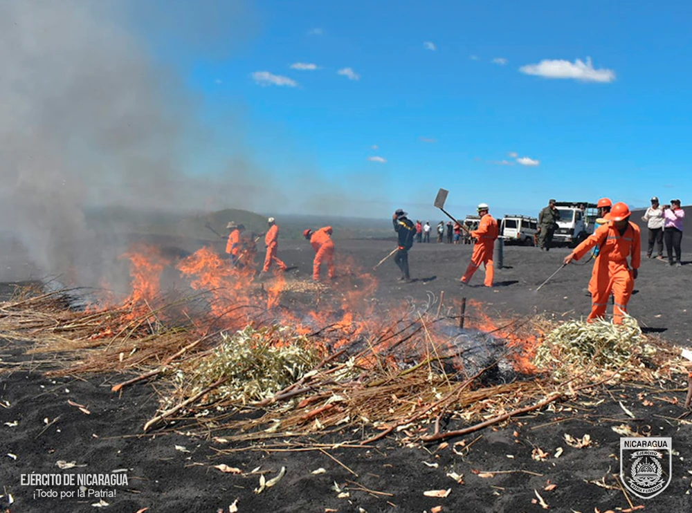 El Ejército de Nicaragua consecuente con el lema de que “Somos el Pueblo mismo uniformado trabajando en su propio beneficio”, el 29 de enero de 2026, a través del 2 Comando Militar Regional, el Estado Mayor de la Defensa Civil y la Unidad Humanitaria y de Rescate “Comande William Ramírez Solórzano“, en coordinación con instituciones del Estado, participaron en el lanzamiento del Plan Nacional Interinstitucional de Prevención y Control de Incendios Forestales, Agropecuarios y Maleza 2026, realizado en la Reserva Natural Volcán Cerro Negro, municipio de León, departamento de León.