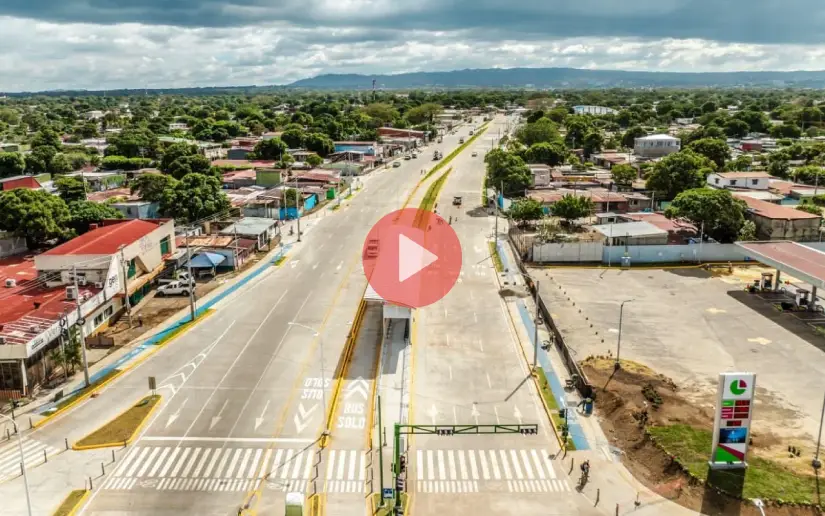 - Reconstrucción de 2.72 km de pista, ampliada a 8 carriles principales (más 2 carriles exclusivos para el transporte colectivo urbano de Managua).