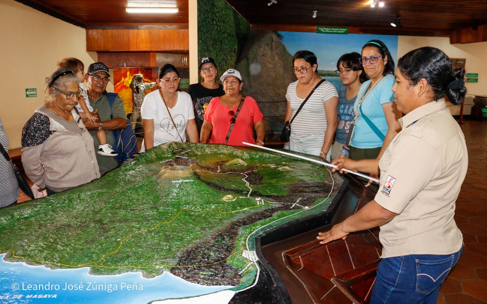 La guía de este parque, Milena Cruz, se encargó de atender un grupo de visitantes de Costa Rica, que llegaron al coloso atraído por la belleza paisajística que integran los cráteres San Fernando, Nindirí, Santiago, laguna de Masaya y el volcán Comalito, un pequeño cerro de 380 metros de altura sobre el nivel del mar.