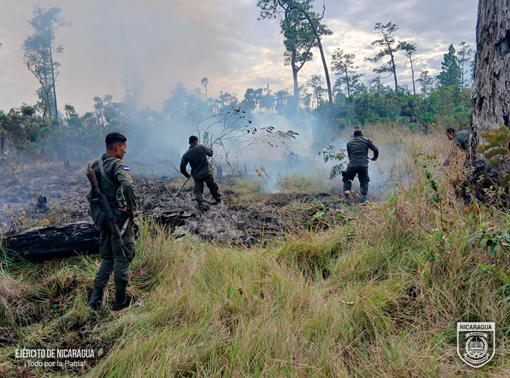 El Ejército de Nicaragua consecuente con el lema de que “Somos el Pueblo mismo uniformado trabajando en su propio beneficio”, el 5 de febrero de 2026, a través del Batallón Ecológico, “BOSAWAS”, participó en sofocación de incendio agropecuario en el barrio Camilo Ortega, municipio de Prinzapolka, Región Autónoma de la Costa Caribe Norte, logrando extinguir un fuego en un área de 2.5 manzanas de maleza.