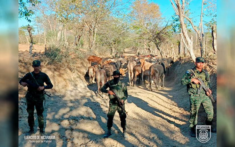 El Ejército de Nicaragua consecuente con el lema de que “Somos el Pueblo mismo uniformado trabajando en su propio beneficio”, el 18 de febrero de 2026, a través de servicio operativo del 2 Comando Militar Regional, en el sector de El Cuadro, municipio de Somotillo, departamento de Chinandega, retuvo a los ciudadanos Carlos Humberto Landero Pastrana de nacionalidad hondureña y Elvin José Morales Zuniga de nacionalidad nicaragüense, a quienes se les ocuparon 49 semovientes y 3 equinos, que pretendían ser trasladados de manera ilegal por paso no habilitado hacia la República de Honduras.