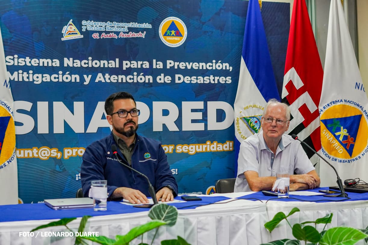 "Estamos también desde ayer enfrentando un enjambre sísmico desde el volcán Masaya; llevamos más de 20 sismos, localizados 11; los otros son pequeños, pero desde anoche activamos todo el SINAPRED, la Defensa Civil, la Policía Nacional, el Ministerio del Interior, el MINSA y, por supuesto, todos los equipos comunitarios COMUPRED, etcétera", informó.