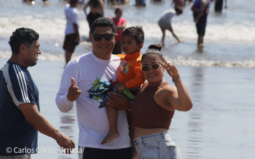 “Aquí andamos disfrutando de Pochomil , alegre en familia, pero sobre todo seguros, para que nuestras vacaciones sean inolvidables”, dijo la joven Katherine Urbina .