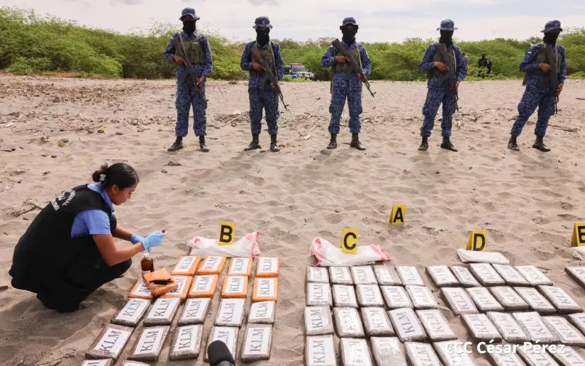 En el marco de la Estrategia del Muro de Contención, en Playa Quizalá, ubicada en el municipio de San Rafael del Sur, departamento de Managua, el Ejército de Nicaragua incautó cuatro sacos de color blanco que en su interior contenían 82 paquetes rectangulares, que en la prueba de campo dieron positivo a cocaína.