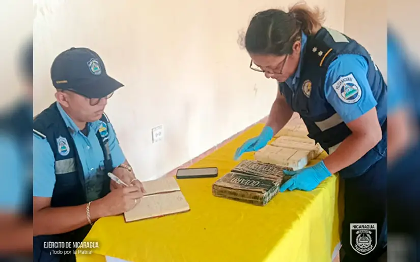 El Ejército de Nicaragua consecuente con el lema de que “Somos el Pueblo mismo uniformado trabajando en su propio beneficio”, el 12 de abril de 2026, a través de sondeo rutinario del Distrito Naval Caribe, en el muelle municipal de Bluefields, Región Autónoma de la Costa Caribe Sur, retuvo a 2 personas quienes a bordo de 1 embarcación tipo panga de transporte de pasajero de nombre “Cukra Waina N° 3”, que navegaba en la ruta Kukra Hill-Bluefields, trasladaban 5 paquetes rectangulares de cocaína.