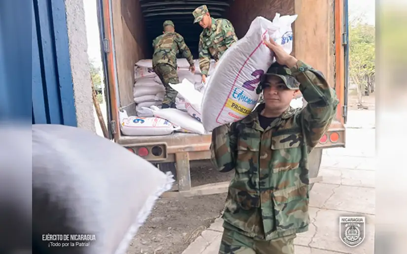 El Ejército de Nicaragua consecuente con el lema de que “Somos el Pueblo mismo uniformado trabajando en su propio beneficio”, el 22 de abril de 2026, a través del 1 Comando Militar Regional, en coordinación con el Ministerio de Educación (MINED), realizó el descargue de 3,116 quintales de alimentos (arroz, frijoles, cereal y maíz) y 2,792 galones de aceite, en el Centro Escolar “María Llanes Rodríguez”, municipio de Estelí, departamento de Estelí, posteriormente serán distribuidos en 151 centros educativos urbanos, beneficiando a 16,510 estudiantes.