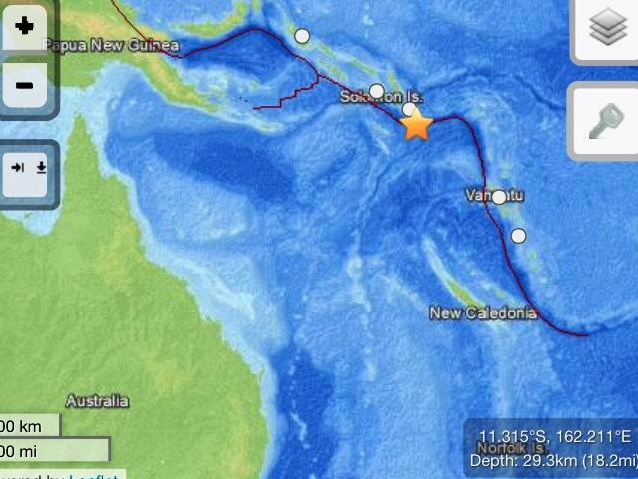 El epicentro del temblor se ubicó a 108 kilómetros de la ciudad de Kirakira, a una profundidad de unos 10 kilómetros.