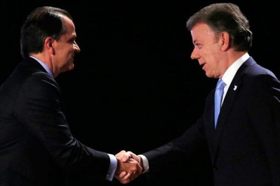 En la primera vuelta electoral, Zuluaga alcanzó el 29,25 por ciento de los sufragios, secundado por Santos, quien obtuvo el 25.69 por ciento de la votación, en una jornada que contó con un participación de apenas el 40,07 por ciento.
