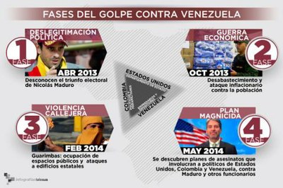 El dirigente socialista explicó que ese plan está compuesto por tres fases y una cuarta resolución: la guarimba, el golpe militar, el magnicidio -para acabar con la vida del Presidente- y la instauración de la violencia para permitir la injerencia extranjera.