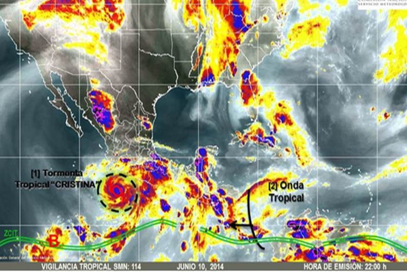 Cristina, que se había formado como tormenta tropical frente a la costa del Pacífico de México, seguirá provocando lluvias muy fuertes en puntos de Jalisco (oeste), Colima, Michoacán y Guerrero (sur) y fuertes en regiones de Nayarit (oeste), además de oleaje de hasta 4 metros de altura en las costas de los estados del Pacífico central, advirtió la dependencia.