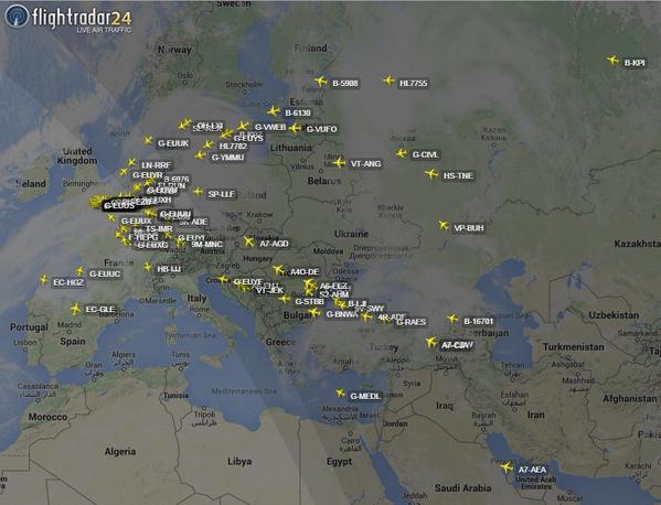 "Todos estos aviones deben dirigirse a algún lugar, pero en este caso, no será el aeropuerto de Heathrow", señala un usuario de Twitter junto con una imagen.