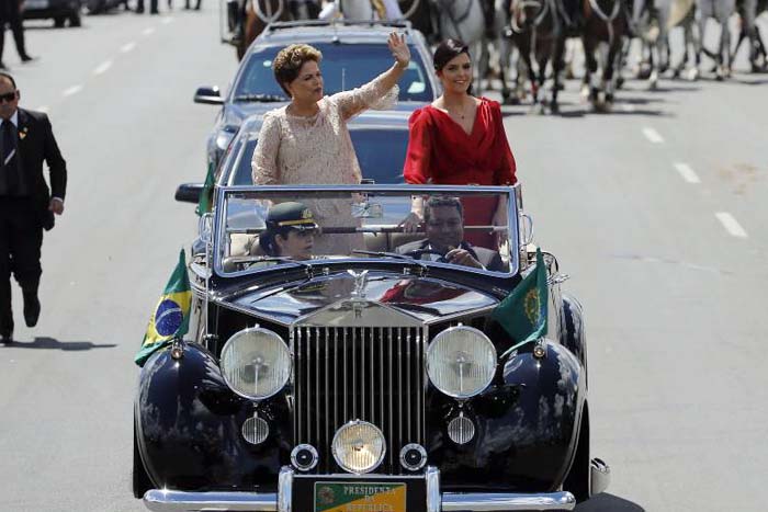 El desfile de cortejo presidencial de Rousseff salió de la Catedral Metropolitana de la ciudad capital hasta el Congreso Nacional.