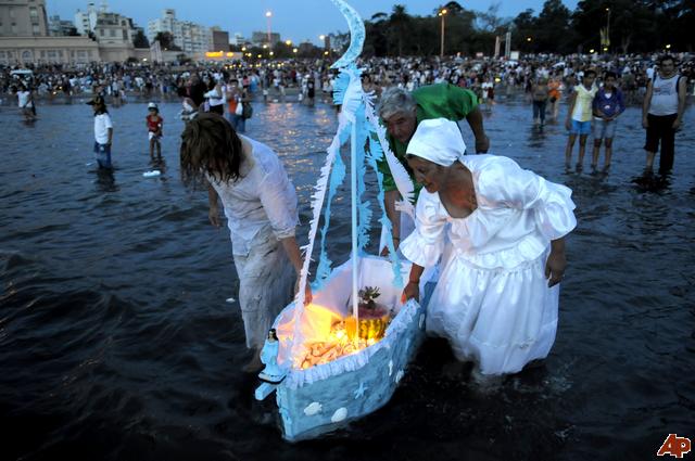 Miles de uruguayos se vistieron de blanco y azul celeste el lunes en honor a Iemejá, diosa del mar de reminiscencias africanas y tradición religiosa en la nación suramericana desde el siglo XX.