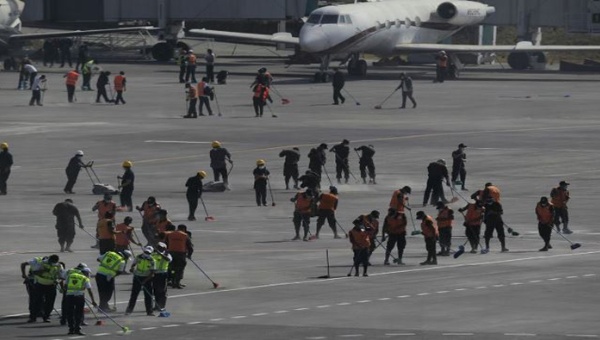 Al menos un centenar de autoridades militares y civiles se encuentran desde la noche del sábado en tareas de limpieza para despejar de ceniza la pista de aterrizaje, y así habilitar de nuevo la terminal aérea, de acuerdo con un comunicado del Ejército de Guatemala.