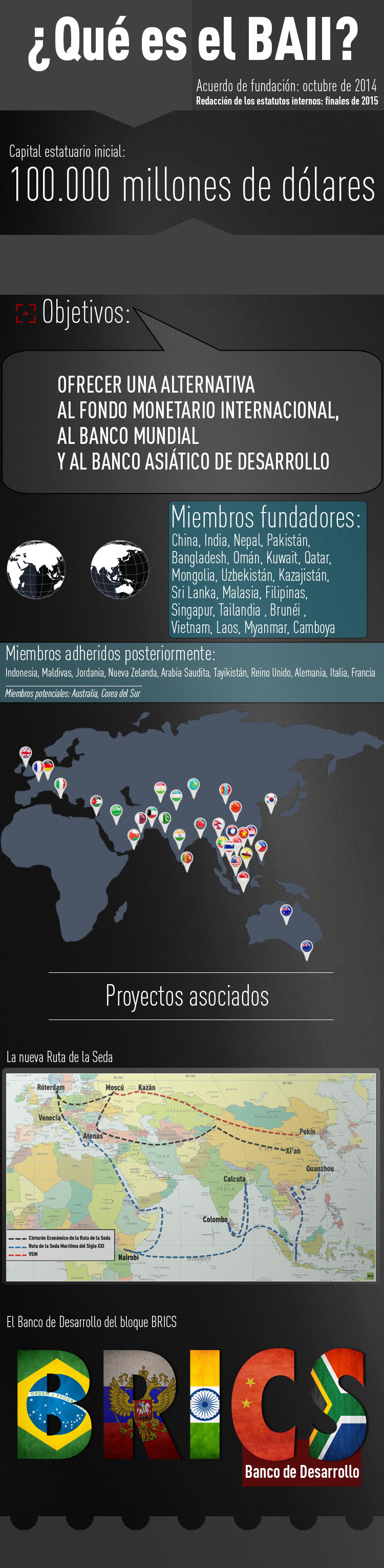 Ya son 45 los países que han anunciado su intención de adherirse al Banco Asiático de Inversiones en Infraestructura, además de algunos otros que "contemplan esta posibilidad", según el portal vestifinance.ru. Incluso los principales rivales de la nueva institución, como la directora del Fondo Monetario Internacional, Christine Lagarde, hablan de unirse o por lo menos cooperar con el banco.