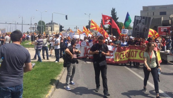 Este domingo cientos de personas opositoras al Gobierno de Macedonia protestan en la capital del país, Skopie, para exigir la renuncia del primer ministro, Nikola Gruevski, a quien acusan de corrupción y de haber espiado telefónicamente a más de 20 mil personas, entre ellas dirigentes políticos, periodistas y autoridades religiosas.