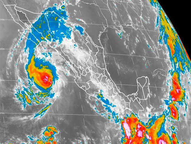 Se prevén lluvias de intensas a puntuales torrenciales con tormentas eléctricas, granizadas, vientos muy fuertes y oleajes de hasta seis metros de altura en algunas regiones de Baja California Sur; serán intensas en algunos puntos de Sonora, y muy fuertes en Baja California, Sinaloa y Chihuahua, todo esto debido a su amplia circulación.