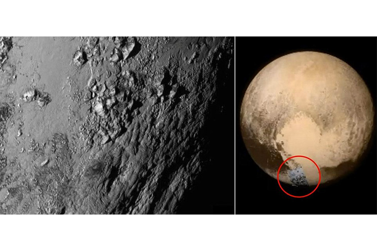 No se trata de enormes picos ni de grandes cadenas montañosas, pero sus cerca de 3.500 metros de altitud y las varias decenas de kilómetros de ancho aportan suficientes datos a los geólogos como para llevarles a pensar que el planeta está activo geológicamente. Pero Plutón es un planeta enano gélido, completamente helado en su superficie, con unos ingredientes superficiales demasiado débiles como para formar estructuras de este tipo. "Por eso pensamos que esas montañas que estamos viendo son en realidad la corteza, la roca de fondo ('bedrock', en inglés), bueno el hielo de fondo (icerock)", ha explicado Stern haciendo un juego de palabras.