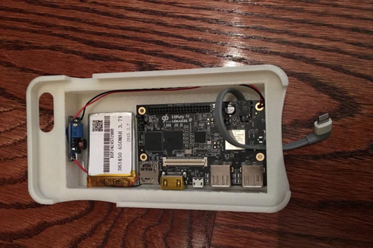 Tras esto, imprimió una carcasa del tamaño del iPhone con una impresora 3D, la cual combinada con la placa mencionada, una batería, un conversor y una resistencia nos da todo lo necesario para lograrlo. Al principio el diseño original era propio de uno de los enormes teléfonos de hace 15 años.