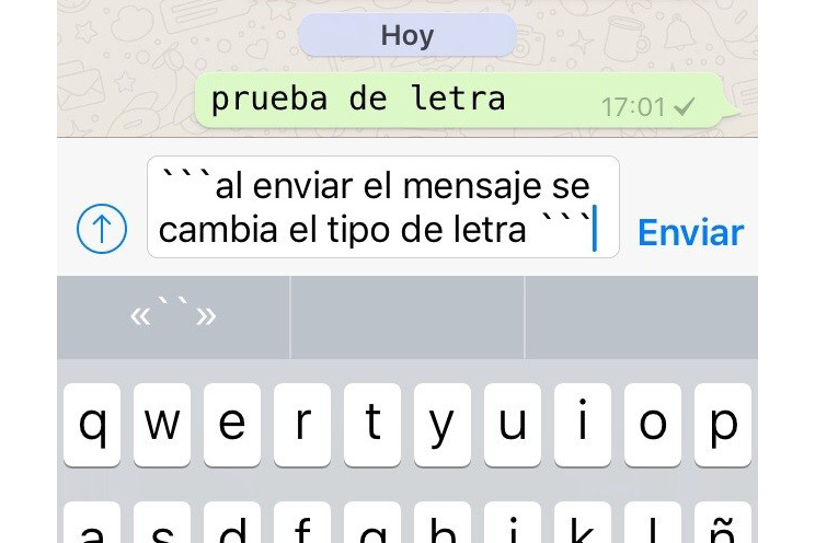 WhatsApp ofrece la tipografía FixedSys. Para activarla hay que poner tres acentos graves (`) antes y después del texto, informa 'El País'.