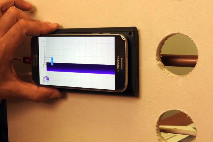 El aparato, llamado WalabotDIY, utiliza tecnología de imagen 3D integrada en un sensor que se conecta al móvil por USB y detecta las emisiones de radio y reflejos de los diferentes objetos. Un algoritmo analiza los datos en tiempo real para saber qué está al otro lado. Basta con descargarse una aplicación (de momento solo funciona con Android) y acercar el sensor a la pared.