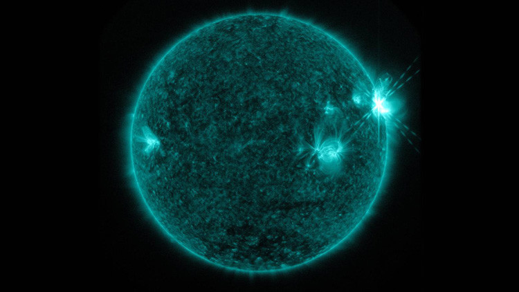 El pasado fin de semana, el telescopio espacial Solar Dynamics Observatory de la NASA, que observa constantemente el comportamiento del Sol, capturó imágenes de tres erupciones solares de nivel medio en la parte superior derecha de ese astro: dos alcanzaron su punto máximo a las 8:02 GMT y a las 20:33 GMT del 2 de abril, mientras que el tercero tuvo su auge a las 14:29 GMT del día 3.