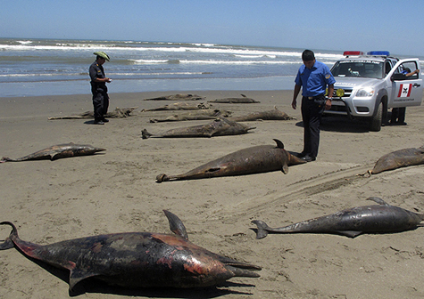 Se trata de 101 delfines de la especie "stenella coeruleoalba", conocidos como "delfines listados", según ese departamento.