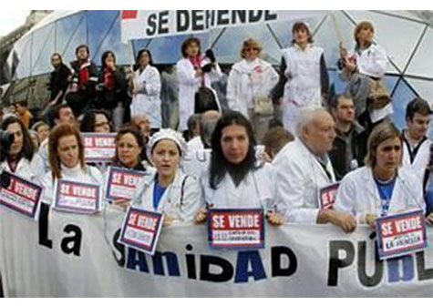 Unos 75 mil empleados de la sanidad pública en Madrid fueron llamados este martes la primera de cinco jornadas de huelga para rechazar los recortes presupuestarios y el proceso de privatización de seis hospitales y 27 centros de salud iniciado por el Gobierno regional.