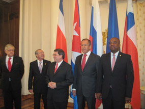 El programa de estancia oficial comenzó ayer con la reunión ministerial de la troika ampliada de la Celac y el canciller Lavrov, como anfitrión, en la sede de las conversaciones oficiales de la Cancillería, en compañía de los ministros Enrique Castillo (Costa Rica), Pierre Richard Casimir (Haiti) y el vicecanciller chileno Alfonso Silva.