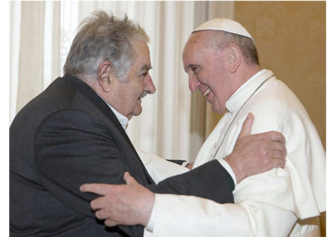 Tras un encuentro sostenido en horas de la mañana con el mandatario uruguayo, el sumo pontífice aseguró que estaba “muy feliz” de haberse reunido con Mujica y resaltó que ambos tienen en común su preocupación por los más desfavorecidos y sus advertencias contra los males del capitalismo.