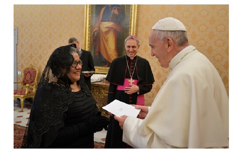 La Oficina de Prensa de la Santa Sede, informó en su boletín oficial que el Papa Francisco recibió, la mañana de este jueves, a la nueva embajadora de Nicaragua Esther Margarita Carballo Madrigal, quien presentó sus Cartas Credenciales al Sumo Pontífice.
