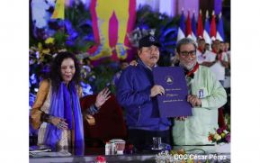 Presidente-Comandante Daniel y Compañera Rosario Vicepresidenta de Nicaragua en el Acto del 43 Aniversario del Triunfo de la Revolución Popular Sandinista. 19 de Julio del 2022