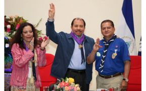 Presidente-Comandante Daniel y Compañera Rosario en Celebración de los 100 Años del Movimiento Scouts en Nicaragua. 5 de Mayo del 2017: