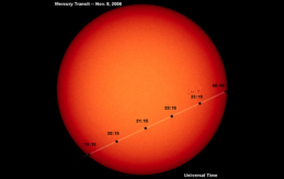 Mercurio estará en tránsito solar el lunes. El primer planeta de nuestro sistema solar semejará un diminuto punto negro al pasar frente al Sol. La NASA dijo que eso ocurre sólo unas 13 veces por siglo.