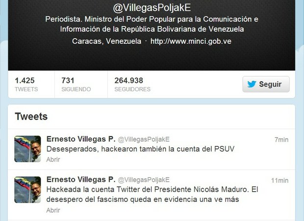 Hackeadas cuentas Twitter del Presidente Nicolás Maduro y del Psuv