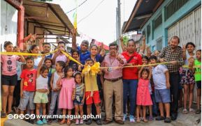 La Alcaldía de Managua inauguró tres calles de concreto hidráulico, conexiones domiciliares de agua potable y sistema de alcantarillado a las familias del barrio Benedicto Valverde, ubicado en el Distrito Cuatro de la capital.