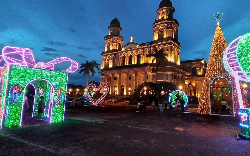 Las familias de Managua ya respiran el ambiente navideño en Plaza de la Revolución y Avenida de Bolívar a Chávez, donde la noche brilla en paz, tranquilidad y seguridad, con una variedad de adornos y luces alusivos a la Navidad.