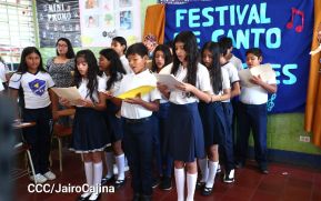 Con la entonación del Himno de Nicaragua en el idioma inglés por estudiantes de primaria, inició este viernes el Festival de Canto en el Centro Escolar San Sebastián.
