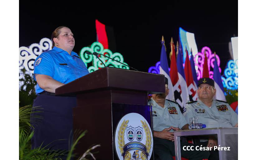 En un emotivo discurso, la Ministra del Interior, María Amelia Coronel Kinloch, destacó que en los 45 años de la fundación del Ministerio del Interior y la Policía Nacional.