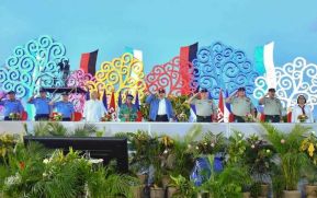El Presidente de Nicaragua, Comandante Daniel Ortega, y la Vicepresidenta, Compañera Rosario Murillo, presiden junto al Comandante en Jefe del Ejército de Nicaragua, General de Ejército Julio César Avilés , el Desfile Militar de Nuestro Pueblo Ejército.