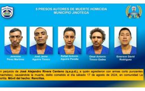 En el informe de resultados del enfrentamiento a la delincuencia, la Policía Nacional de Nicaragua destacó que fueron capturados 22 sujetos por delitos de peligrosidad en el país, de los cuales 5 son señalados de ser autores de una muerte homicida.