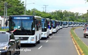 El Presidente Comandante Daniel Ortega Saavedra, durante la entrega de nuevas unidades de buses a cooperativas de transporte intermunicipal, saludó a las familias de Venezuela, ya que el día de hoy se ha confirmado la victoria del pueblo de Bolívar.