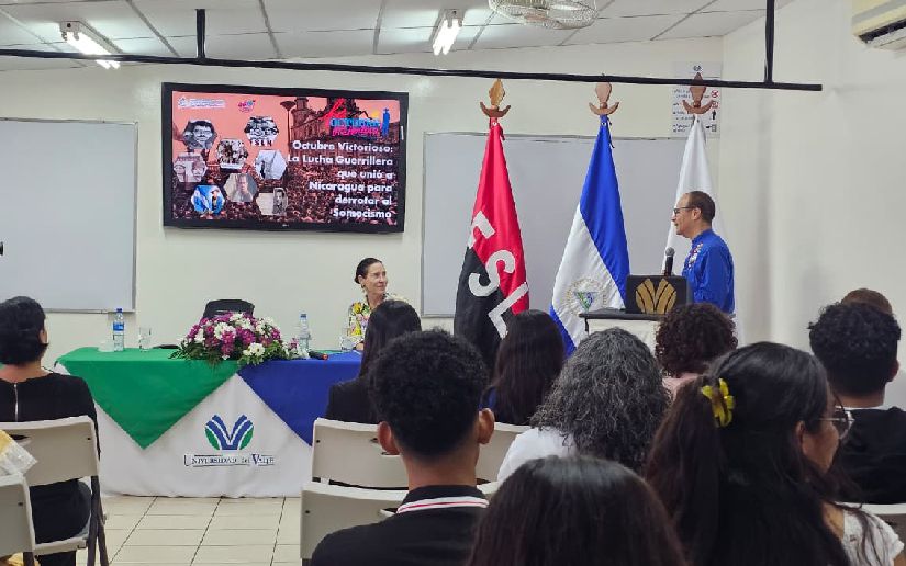 El diputado Carlos Emilio López, brindó una charla a estudiantes de la Universidad del Valle en la que habló sobre los hechos que se vivieron en el Octubre Victorioso.