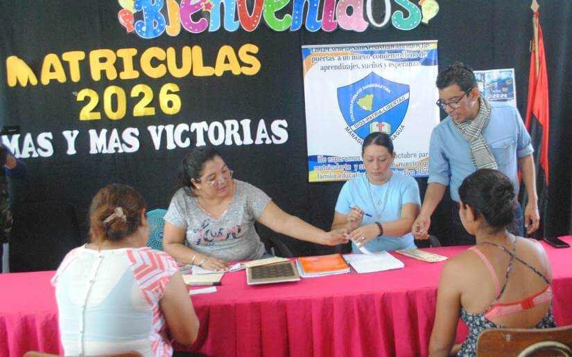De manera satisfactoria, en un 90 por ciento avanza el proceso de matrícula para el Ciclo Escolar 2026 "Más y Más Victorias", en el Colegio Público San Sebastián, ubicado en el Distrito Dos de Managua.