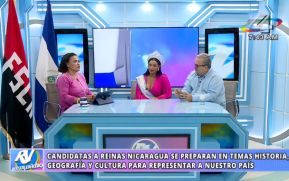 El coach de la plataforma Nicaragua Diseña (ND), Fernando Fuentes, y la señorita Nicole Hodgson, actual soberana de Reina Nicaragua, embajadora de amor 2024, participaron en la Revista en Vivo de canal 4, donde compartieron detalles del evento de belleza.