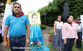 Con flores en el monumento en la rotonda que lleva su nombre en Managua, la Juventud Sandinista celebró el 71 aniversario del natalicio del Comandante eterno Hugo Rafael Chávez Frías.