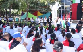 Honrando la hermandad histórica y solidaridad con el pueblo y Gobierno palestino, la Universidad Nacional Politécnica (UNP) inauguró la Plaza Palestina en el Recinto Universitario Comandante Carlos Fonseca Amador.