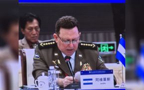 El Comandante en Jefe de las Fuerzas Militares del Ejército de Nicaragua, General de Ejército JULIO CÉSAR AVILÉS CASTILLO, durante el desarrollo del VI Foro de Defensa.